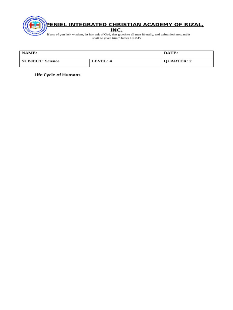 SUBJECT: Science LEVEL: 4 QUARTER: 2