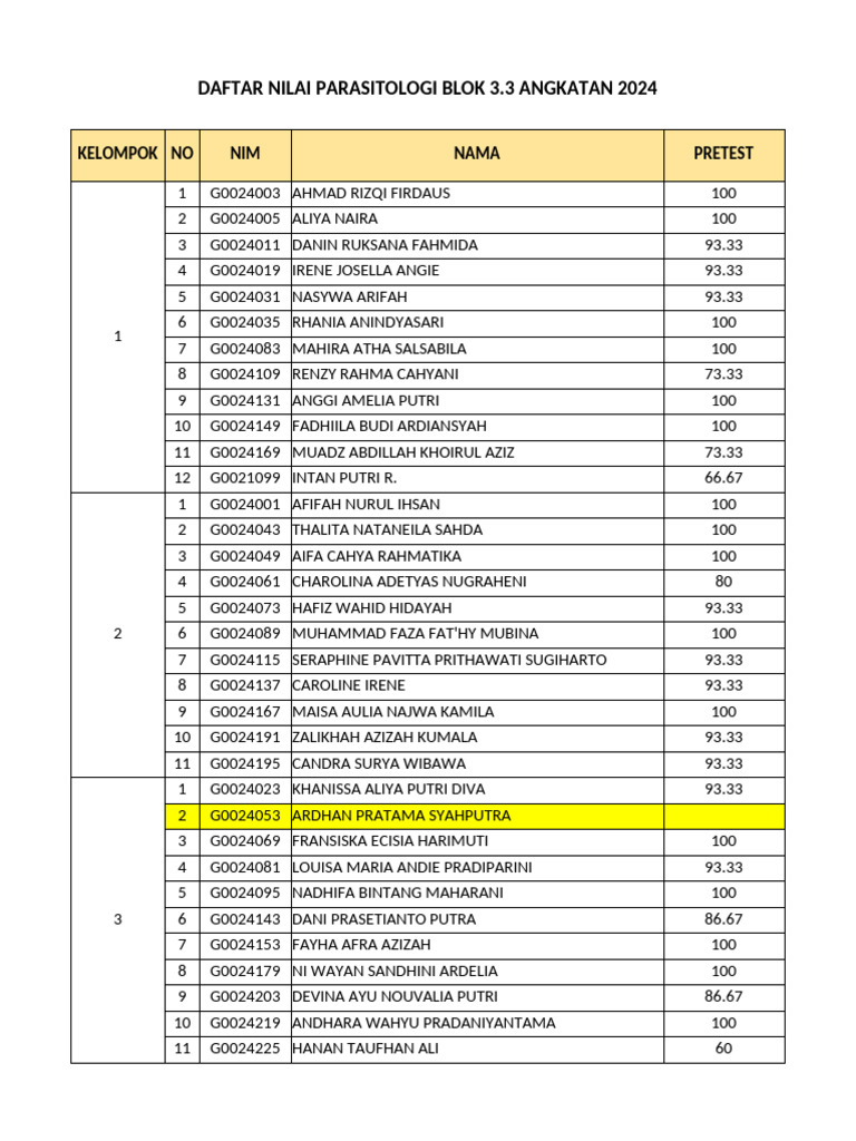 DAFTAR NILAI PARASITOLOGI BLOK 3.