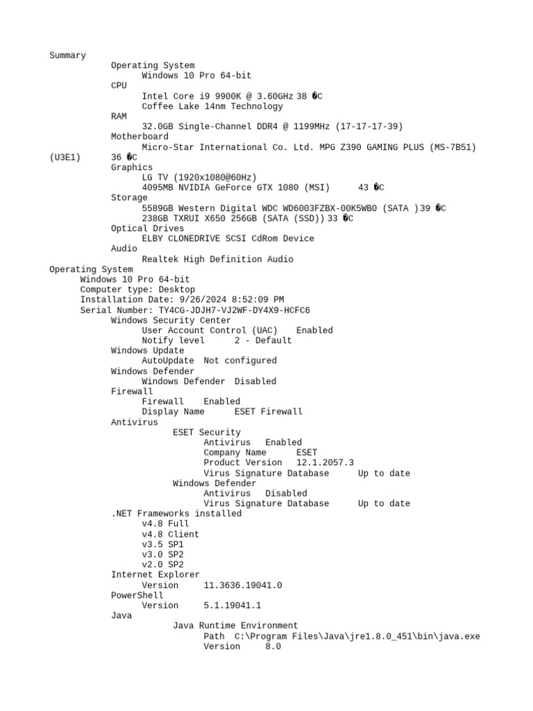 Intel Core i9 9900K @ 3.60GHz 38 �C