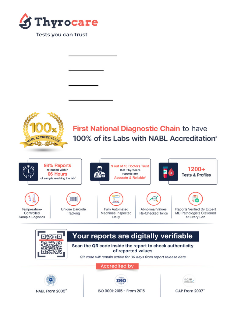 v Neither Thyrocare, nor its employees/representatives assume: (a) any liability, responsibility for any loss or damage