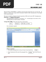 7. Click Clear All button to remove all the tabs set currently by you. 8. Click OK button to reflect the changes made now on to the document. 1.9 Inserting Numbers and bullets in the word document 1. Type the following text in the document currently open. Ceat Cricket Ratings: Sachin Tendulkar. Brain Lara. Steve Waugh. Alec Stewart. Nathan Astle. 2. Select only the name from the text you have typed. 3. Select the Format option from the Main menu. 4. Click Bullets and Numbering option. 5. Screen as shown in fig will appear.