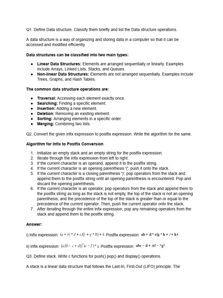 Q1. Define Data structure. Classify them briefly and list the Data structure operations.