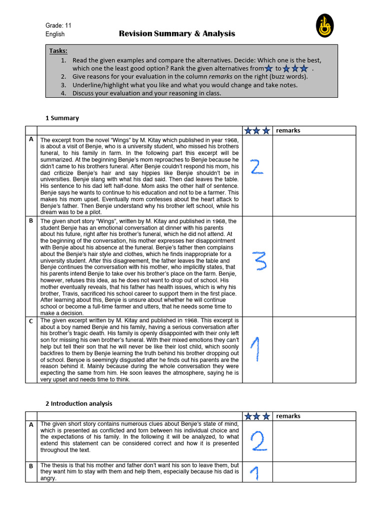 English Revision Summary & Analysis