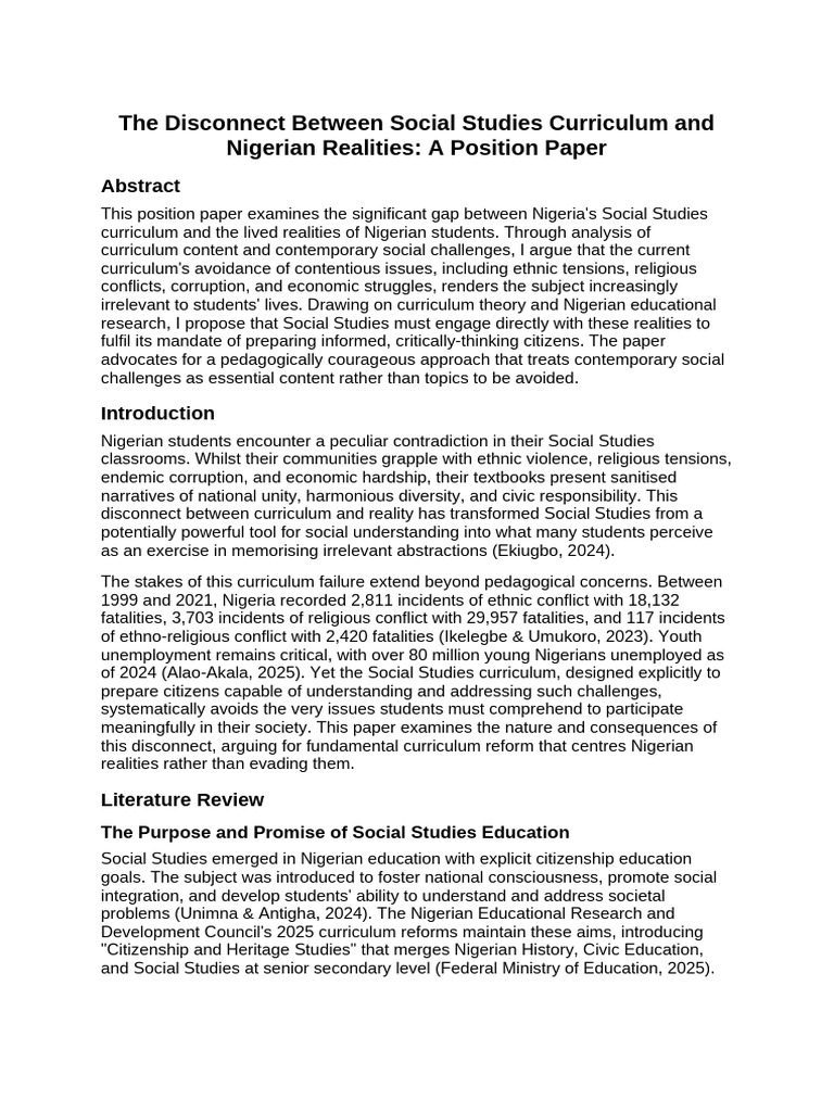 of 2024 (Alao-Akala, 2025). Yet the Social Studies curriculum, designed explicitly to