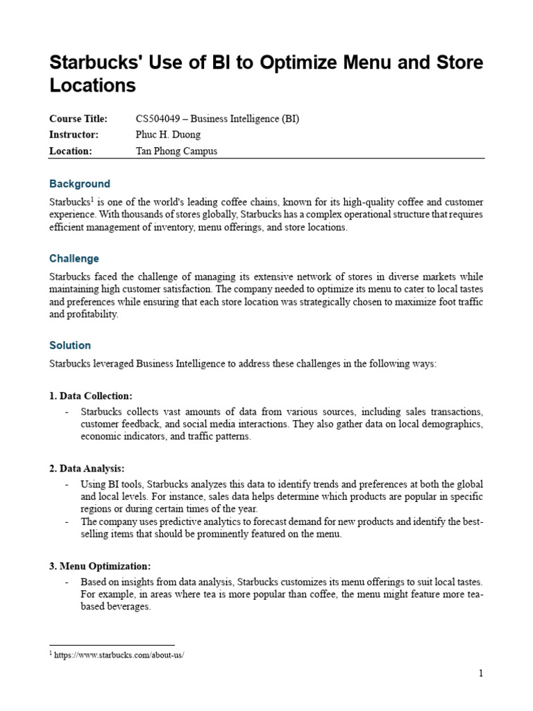 Starbucks leveraged Business Intelligence to address these challenges in the following ways: