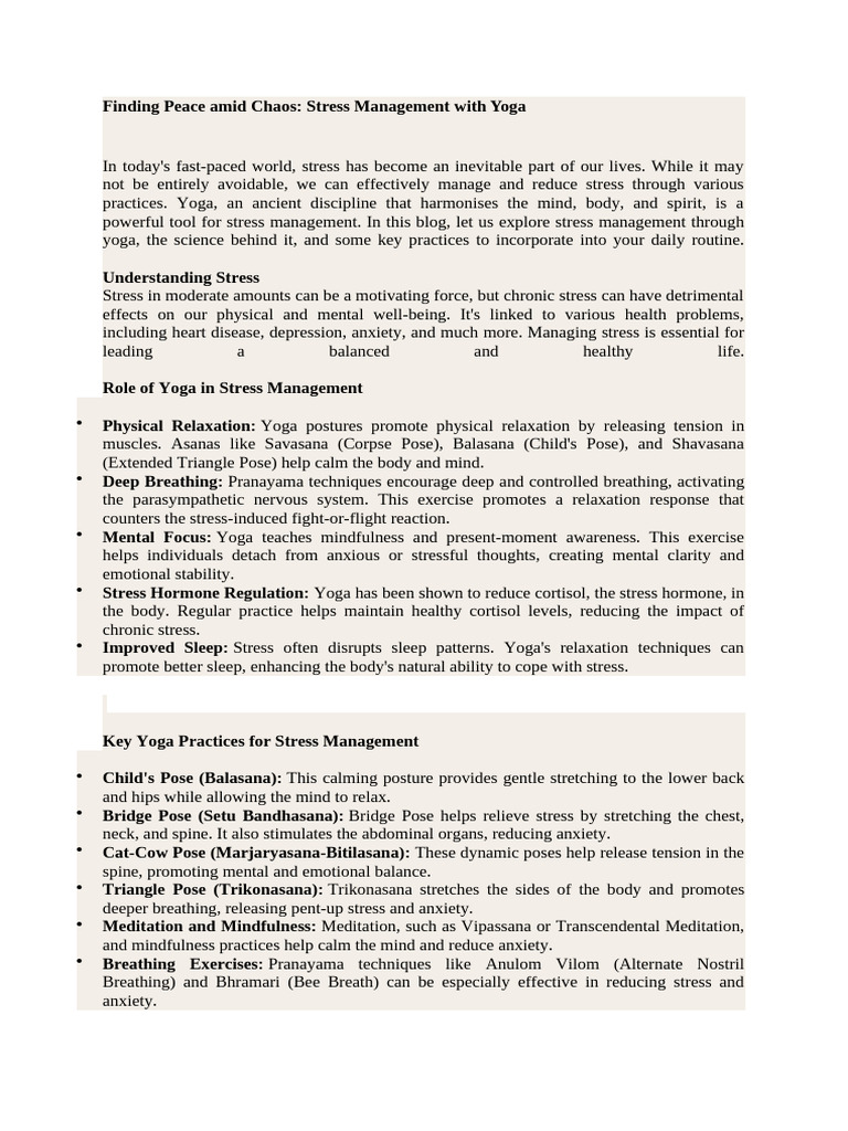 Finding Peace amid Chaos: Stress Management with Yoga