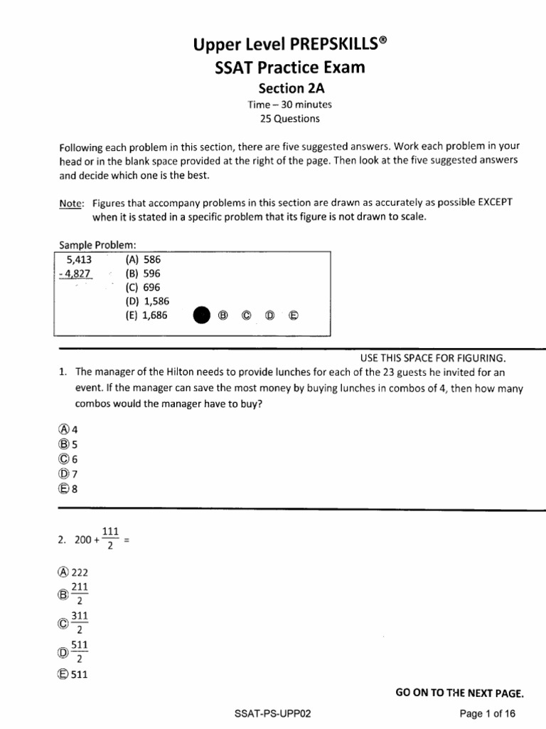 Ssat-Ps-Upp Answer Keys