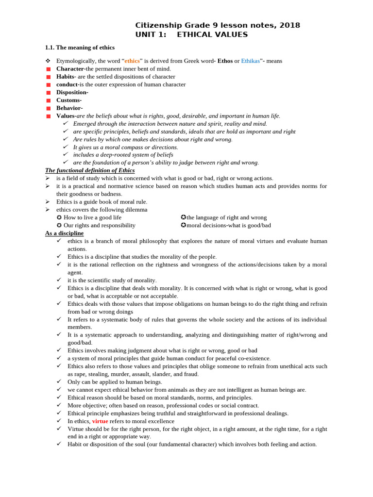 Etymologically, the word “ethics” is derived from Greek word- Ethos or Ethikas”- means