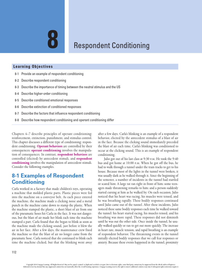 in the tunnel. The operant behavior is walking quickly or 8-10 Respondent Conditioning