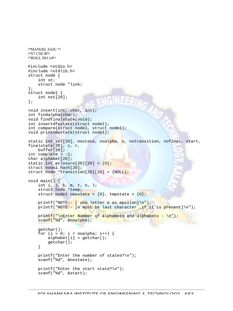 printf("NOTE:- [ use letter e as epsilon]\n");