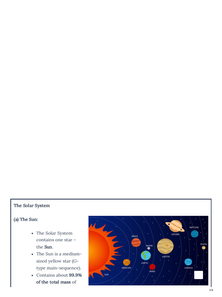 CIE iGCSE Co-ordinated Sciences-P6.1 The Solar System- Study Notes