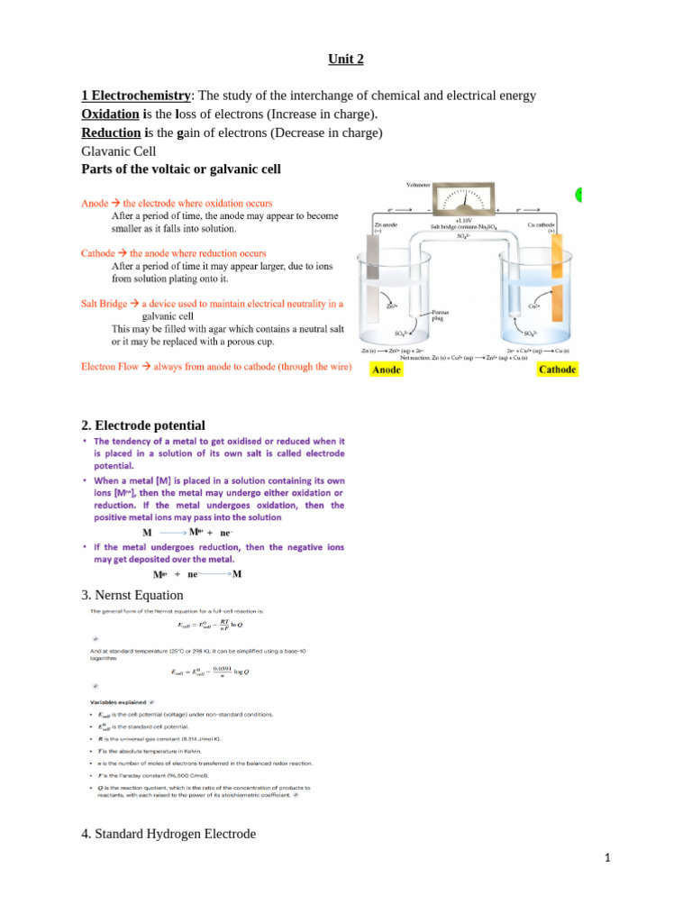 1 Electrochemistry: The study of the interchange of chemical and electrical energy