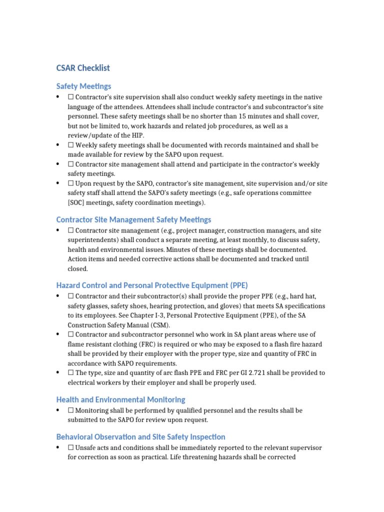 CSAR Checklist