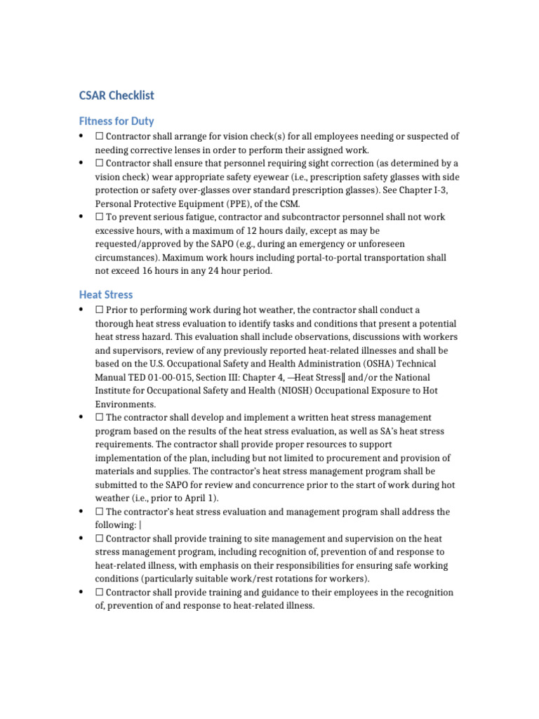 ☐ Contractors shall ensure that their ERP is aligned with the SAPO and/or SA facility’s