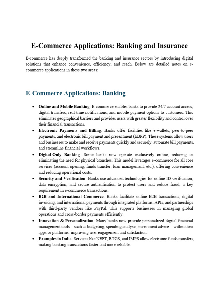 E-commerce has deeply transformed the banking and insurance sectors by introducing digital