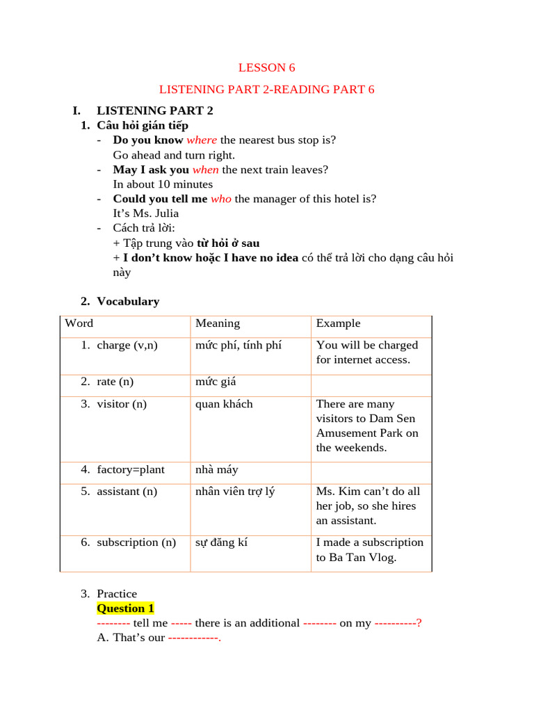 - 4 đoạn, mỗi đoạn có 4 câu hỏi: từ vựng, ngữ pháp và điền cả câu