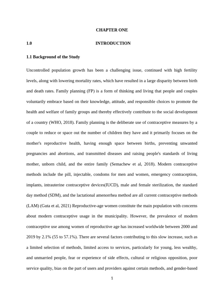 of a country (WHO, 2018). Family planning is the deliberate use of contraceptive measures by a
