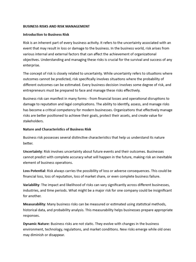 Nature and Characteris cs of Business Risk