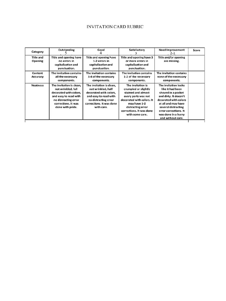 Invitation Card Rubric