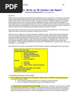 Grading: The easiest way to see how you will be graded is to refer to the IB grading rubric (a shortened version is shown below). For each lab, your teacher will simply determine how well your lab meets the criteria listed in the score form. When you turn in a lab to be graded, the IB Grading Rubric with your full name, date of the lab and complete title of the lab must be attached to the front of the lab report. Note that some labs will have all the criteria evaluated, whereas in others only a few of the criteria will be evaluated. The scores from all of your reports account for at least 25% of your semester grade (depending on your teacher). Your laboratory notes, either on the yellow data sheets or in a laboratory notebook, must be attached to each lab report. If no report is assigned, your laboratory notes must be kept in a safe place until then end of the course. Abbreviated IB Rubric: