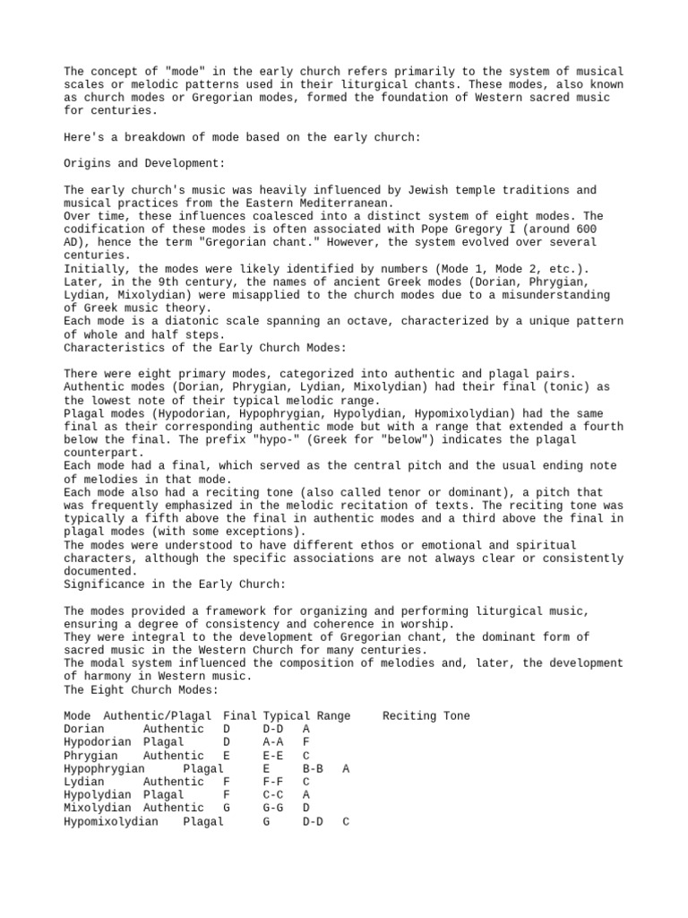 Here's a breakdown of mode based on the early church: