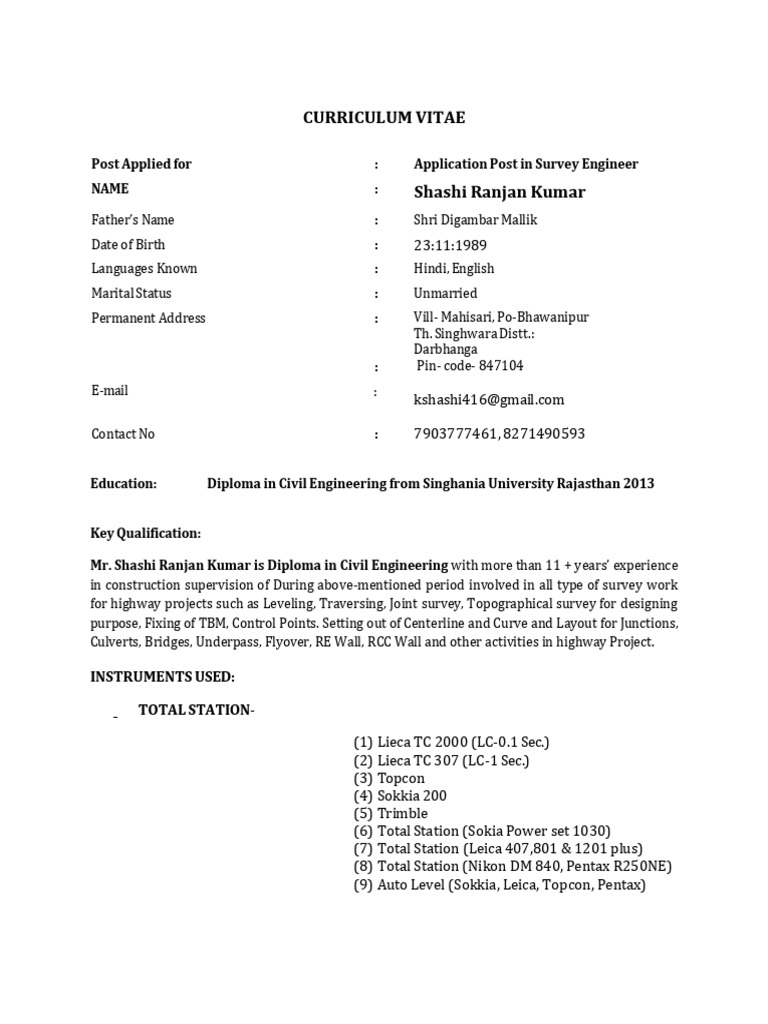 Job Responsibility: As a surveyor he was responsible for survey works Total Station, auto