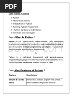 • In Python, Indentation is used to define blocks of code. It tells the Python