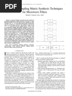 Keywords: filters, transmission zeros, cross-couplings, extended coupling matrix, similitude transformations, square resonator. Introduction Conventional bandpass filters (BPF) are usually composed from a number of in-line synchronously tuned resonators, each of its elements being coupled only with two other elements, the previous and the next one. Such structures are submitted to some well-known theoretical limitations, but a part of them can be avoided by using cross-couplings between the filter elements (Fig. 1).