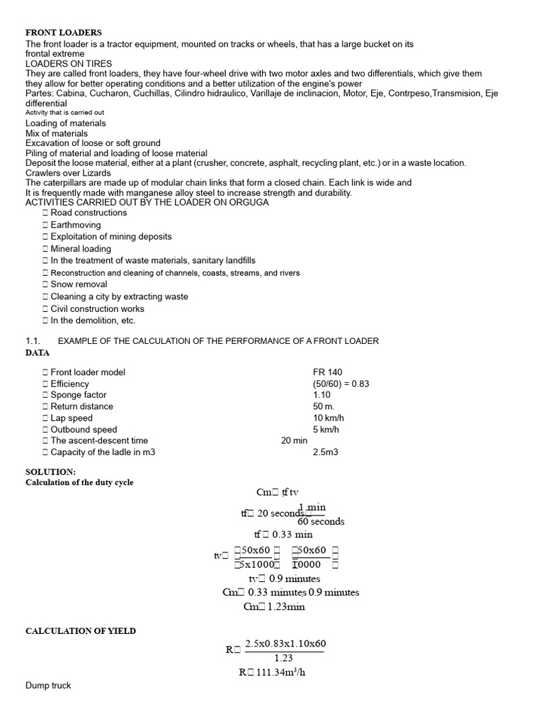 Partes: Cabina, Cucharon, Cuchillas, Cilindro hidraulico, Varillaje de inclinacion, Motor, Eje, Contrpeso,Transmision, Eje