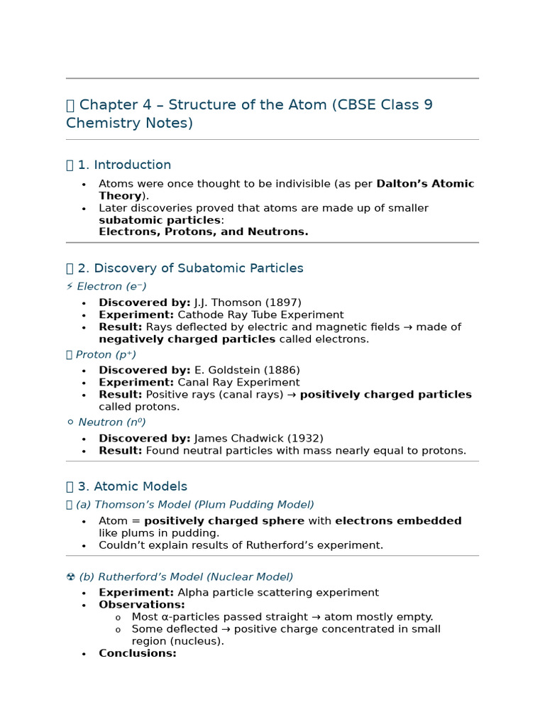 🧪 Chapter 4 – Structure of the Atom (CBSE Class 9