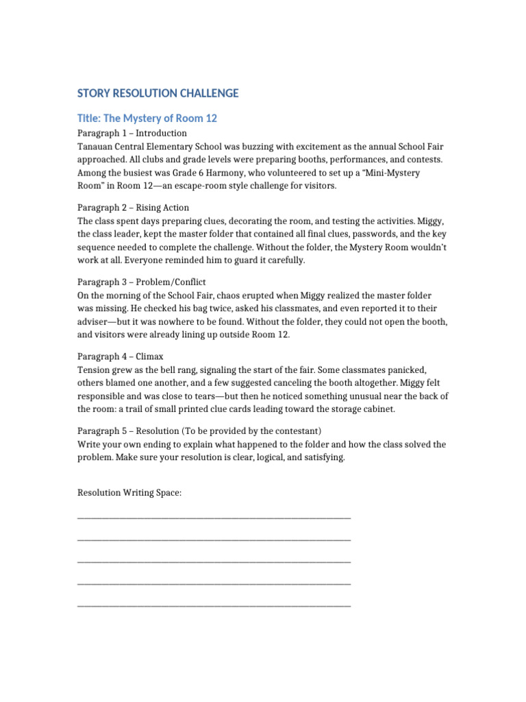 Paragraph 5 – Resolution (To be provided by the contestant)