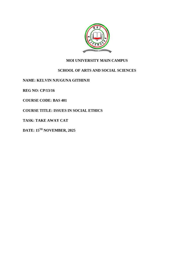COURSE TITLE: ISSUES IN SOCIAL ETHICS