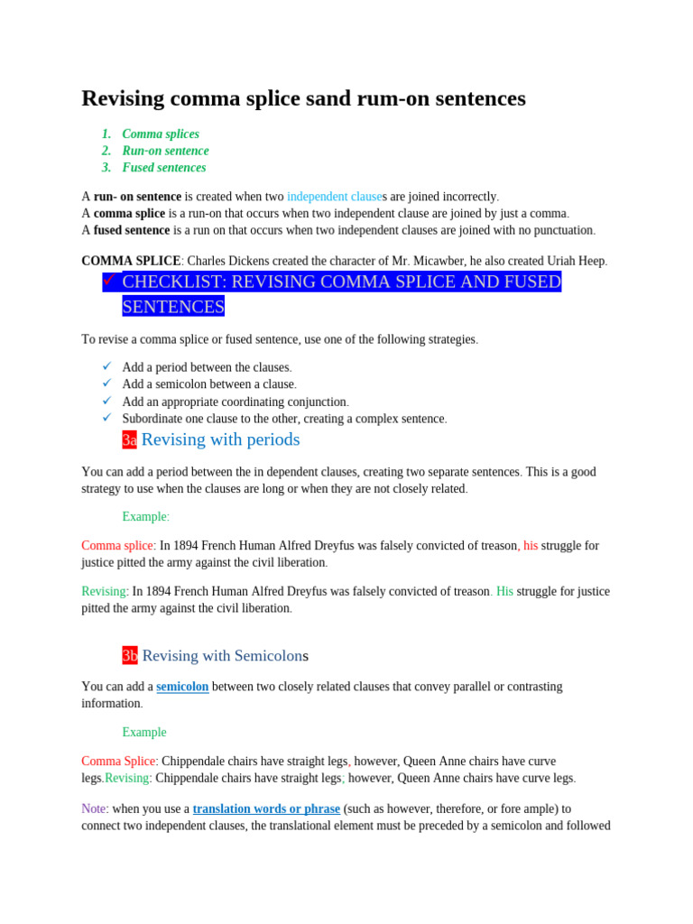 Revising comma splice sand rum-on sentences