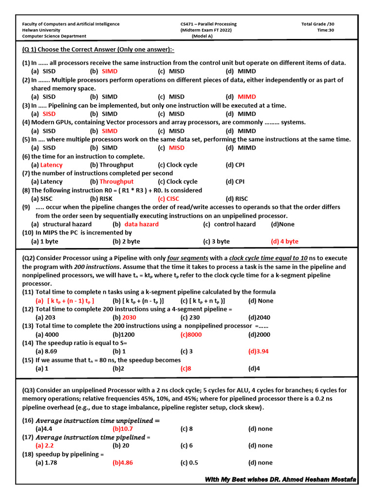 Faculty of Computers and Artificial Intelligence CS471 – Parallel Processing Total Grade /30