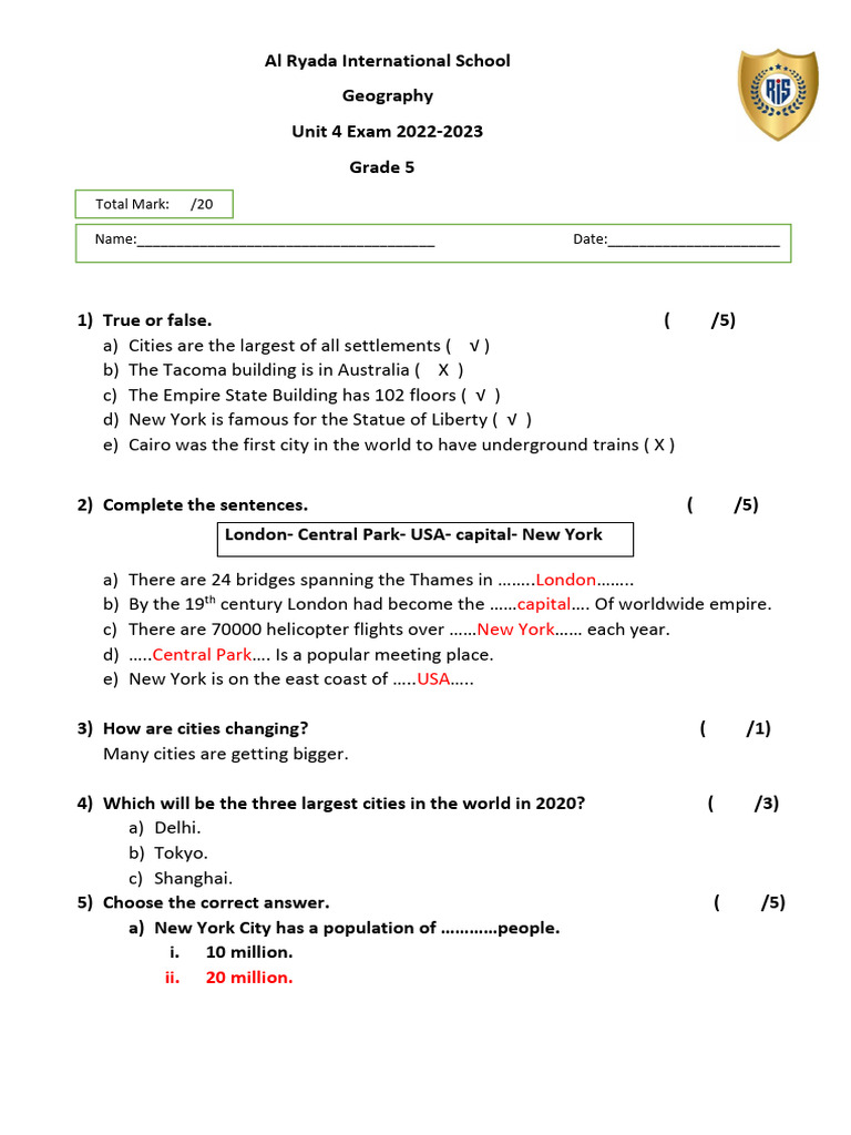 4) Which will be the three largest cities in the world in 2020? ( /3)