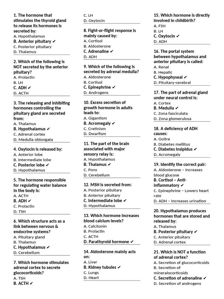 C. TSH C. Both ADH & Oxytocin ✔ C. Decreased metabolic rate