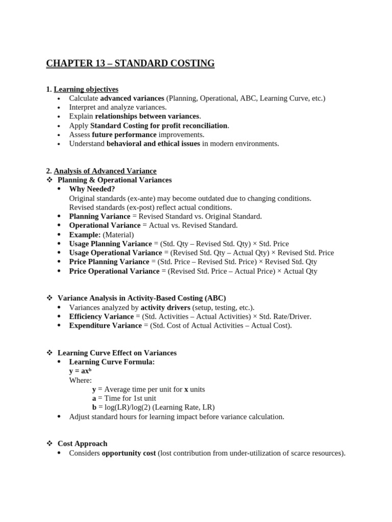 Calculate advanced variances (Planning, Operational, ABC, Learning Curve, etc.)
