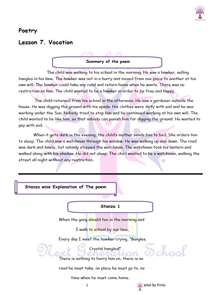be a hawker, a gardener, or a watchman? Pick out the lines in each stanza,