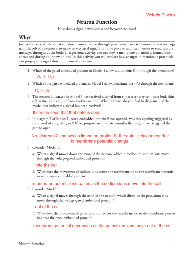 messages throughout the body. In a previous activity you saw how a membrane potential is formed both