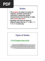 1. Engineer, or civil, scales, such as 1˝ = 10´ or 1˝ = 50´, are used for measuring roads, water mains and