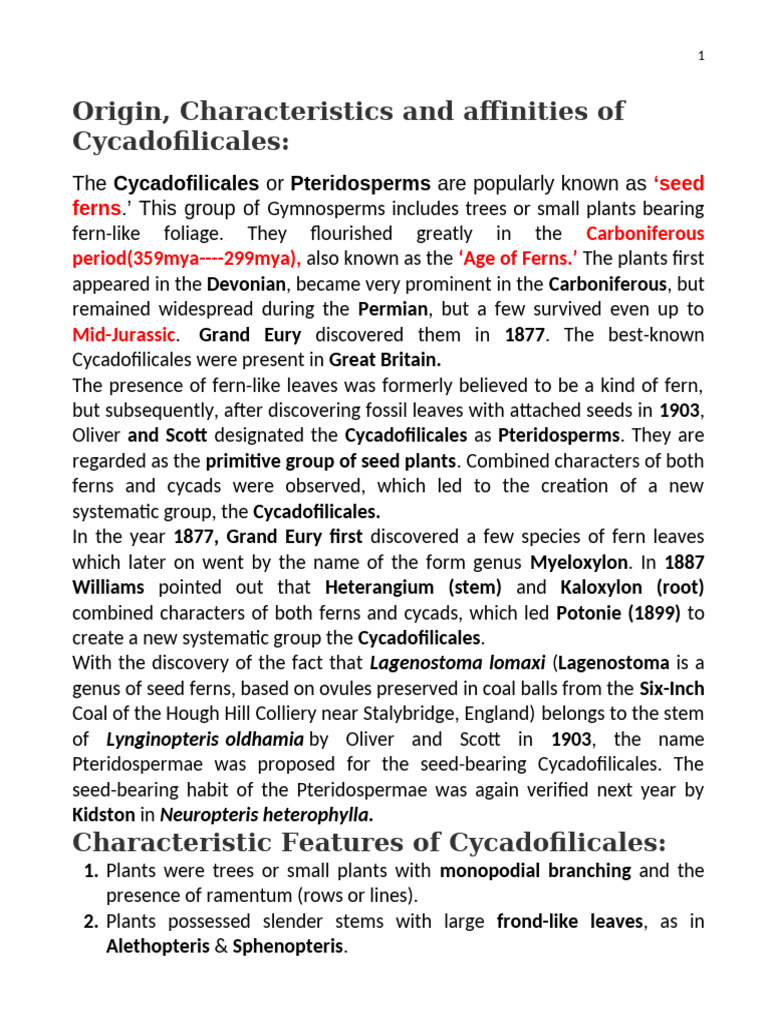 ferns and Cycadophytes due to their several resemblances with both groups.