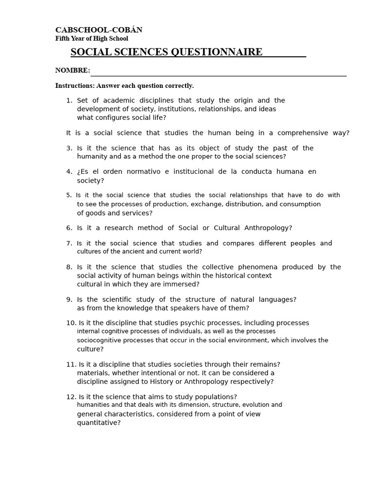SOCIAL SCIENCES QUESTIONNAIRE