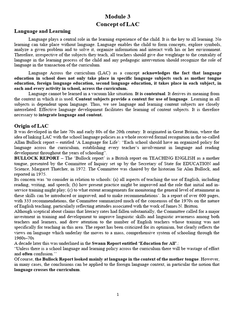 Language Across the curriculum (LAC) as a concept acknowledges the fact that language