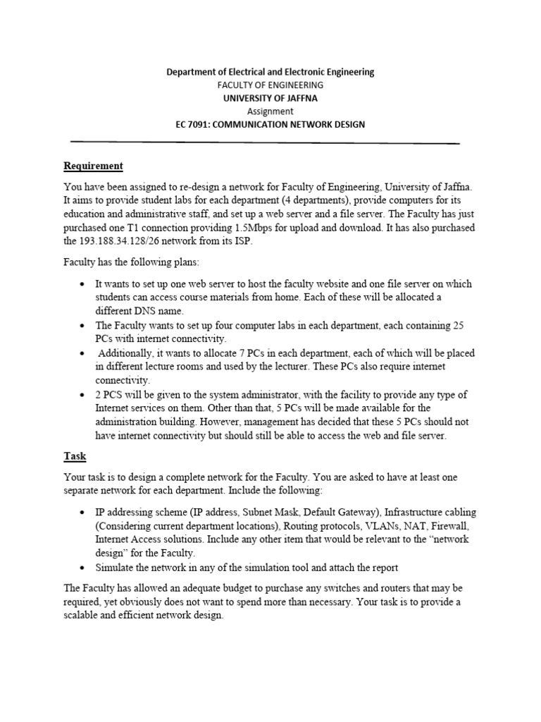 You have been assigned to re-design a network for Faculty of Engineering, University of Jaffna.