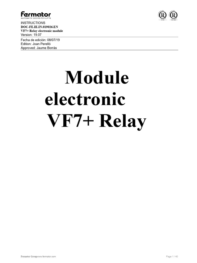 • Electronic CDL When a power failure occurs while the door is fully closed, the VF7+ Relay detects the drop of
