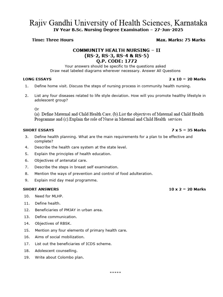COMMUNITY HEALTH NURSING – II (RS-2)