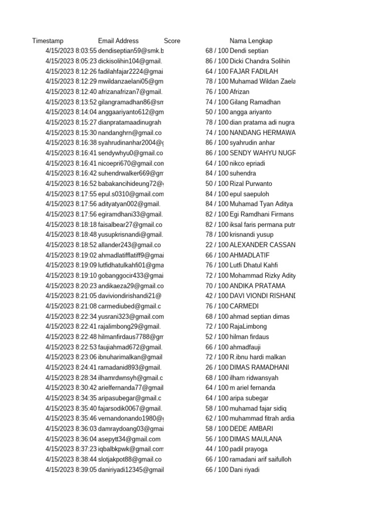 4/15/2023 10:12:09 apeydilla321@gmail.co 70 / 100 m rizky ardiansyah