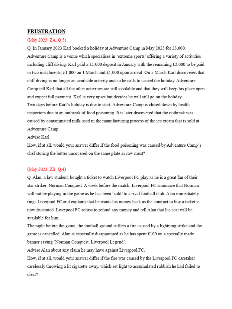 Q. ‘The law on frustration is said to be concerned with promoting commercial certainty.