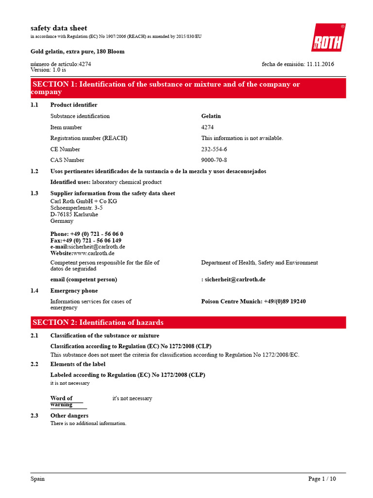 Substance identification Gelatin