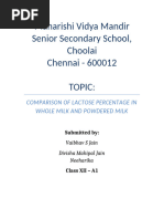 AIM: To Compare the percentage of Lactose in Powdered Milk and Whole Milk